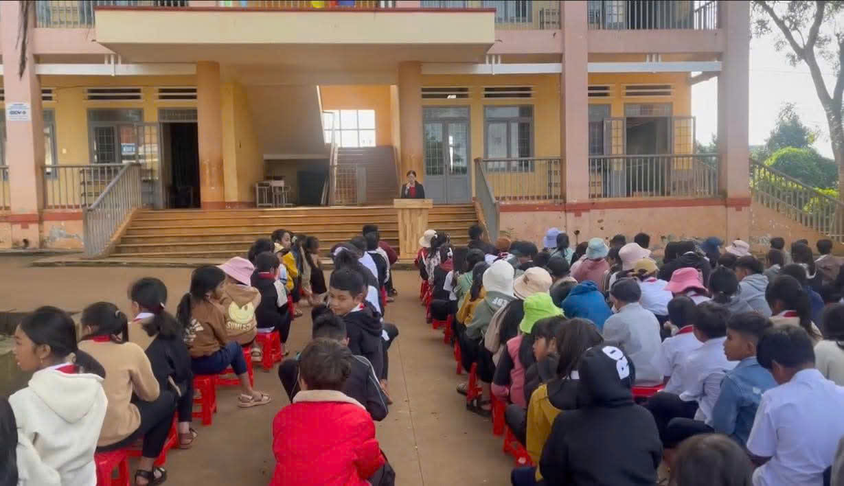 Sáng ngày 6/10/2025 Liên đội Y Jút triển khai kế phong trào nuôi heo đất, phong trào “Đôi bạn cùng tiến”. Bạn giúp bạn và tiếp tục thực hiện Mỗi tuần một câu chuyện đẹp, một cuốn sách hay, một tấm gương sáng. Cũng trong buổi chào cờ đầu tuần, cô Vũ Thị Hiền hiệu phó nhà trường đã tuyên truyền Bảo vệ trẻ em trên môi trường mạng đến với học sinh toàn trường.